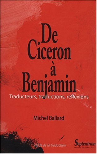 par 22 juin 2007 De Cicéron à Benjamin, Presses Universitaires du Septentrion (Michel Ballard) De Cicéron à Benjamin: traducteurs, traductions, réflexions. Front Cover. Michel